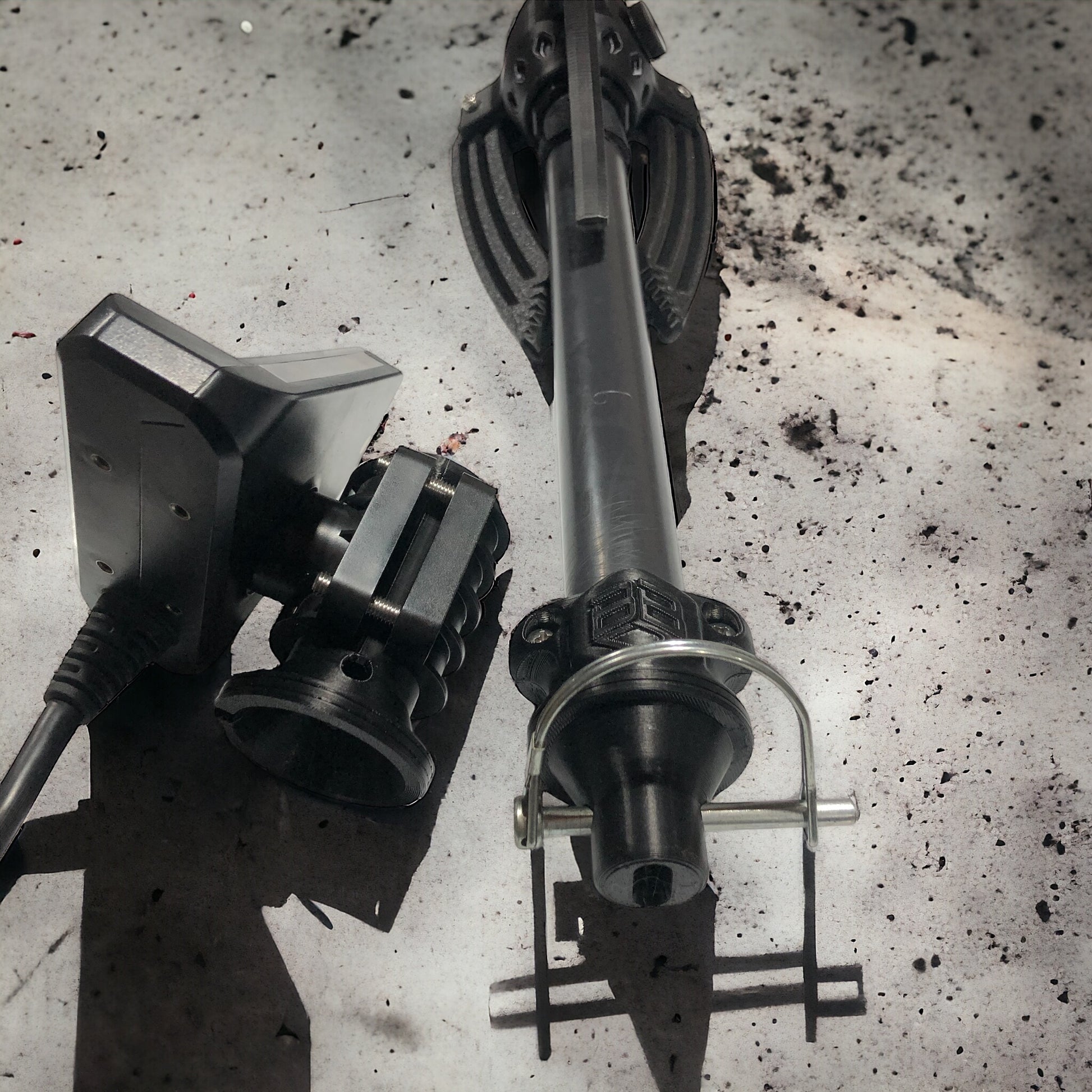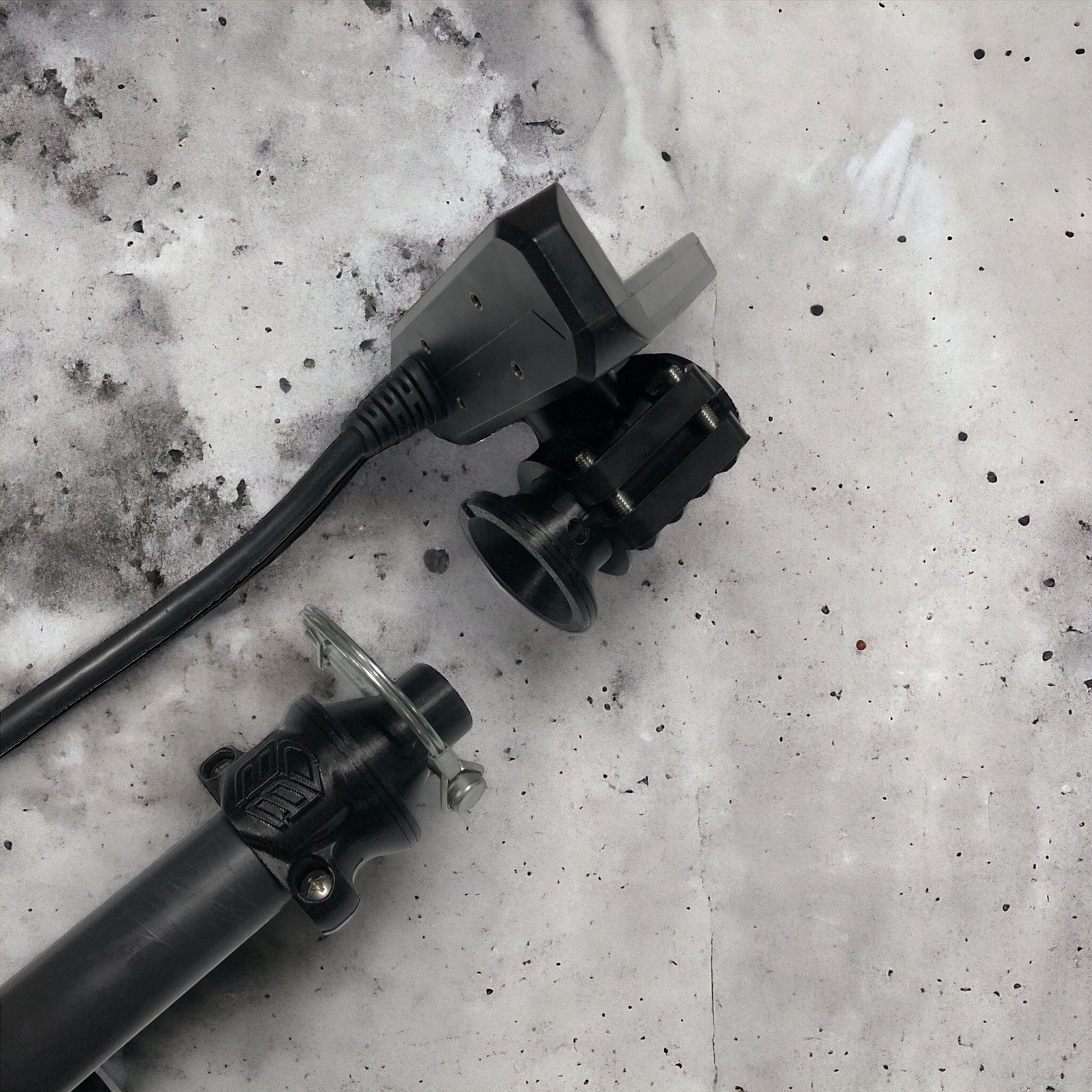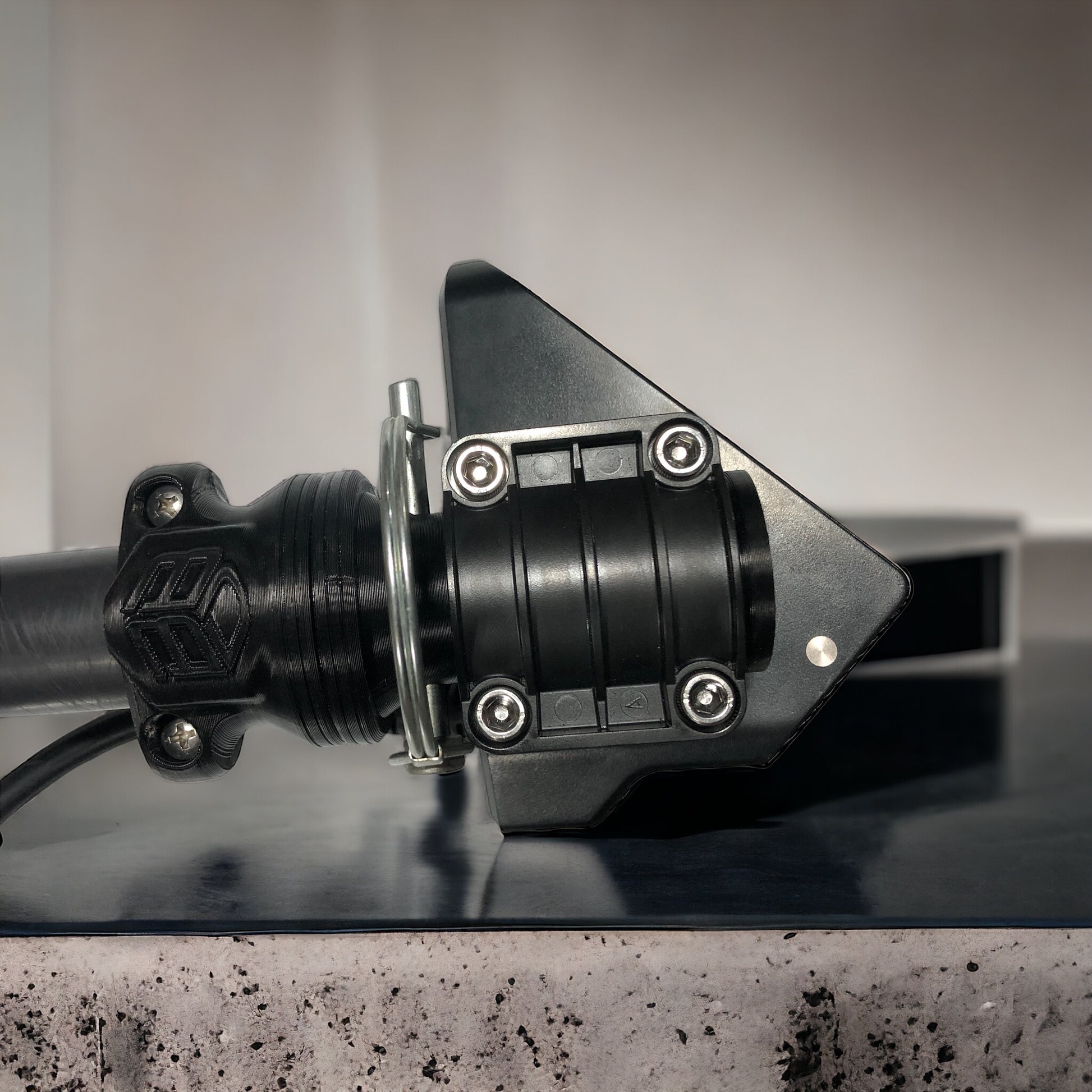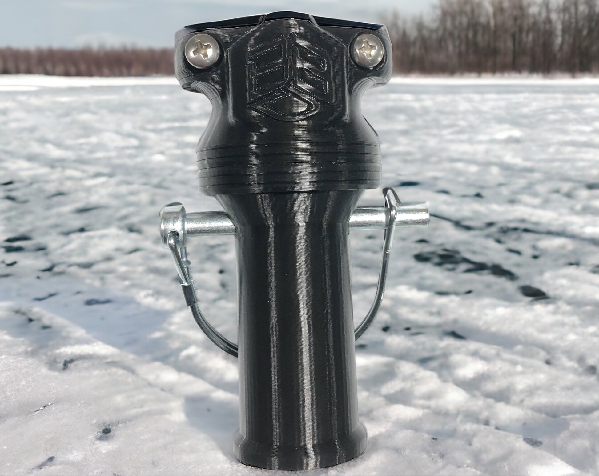 The BrowneBilt Ice Bundle Transducer Quick Attach Mount can be used on either end of the pole. The threaded stud will screw into the mount as well as clamping directly to the pole. Optional set screw integrated into the rear of the mount.
