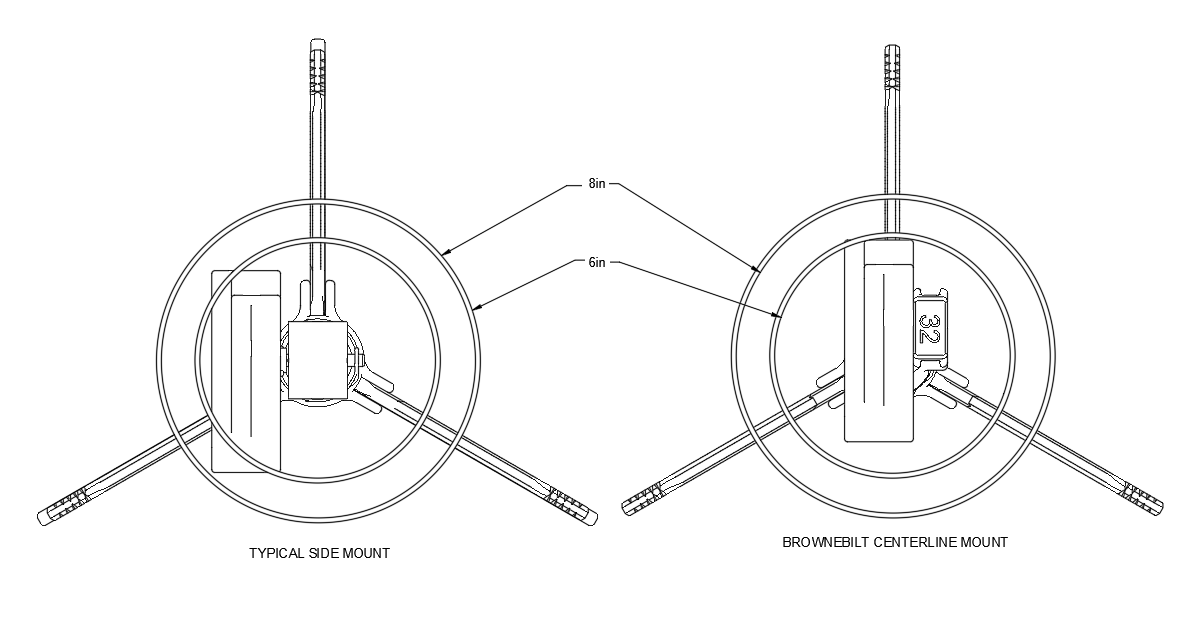 - Install the factory mount and clamp onto the adapter mount centering it on the D Pin holes. It is recommended to use the rubber wrap that came with the ice bundle transducer kit. This will help cushion the mount but not required