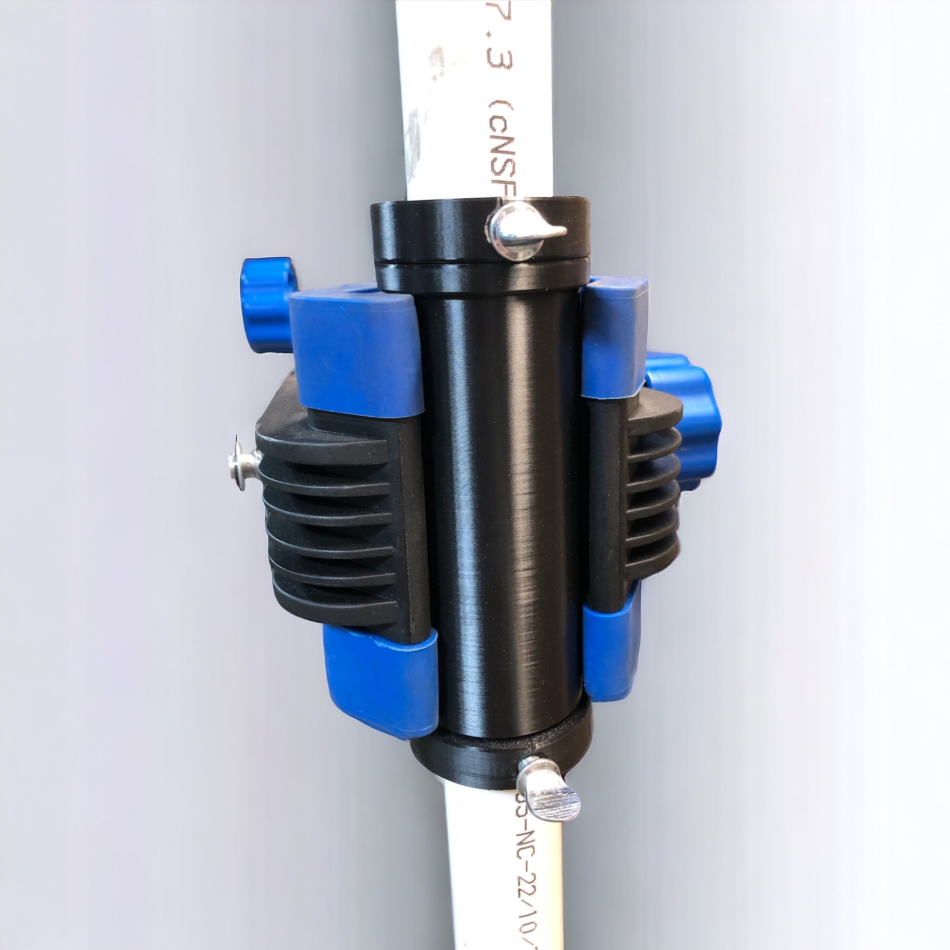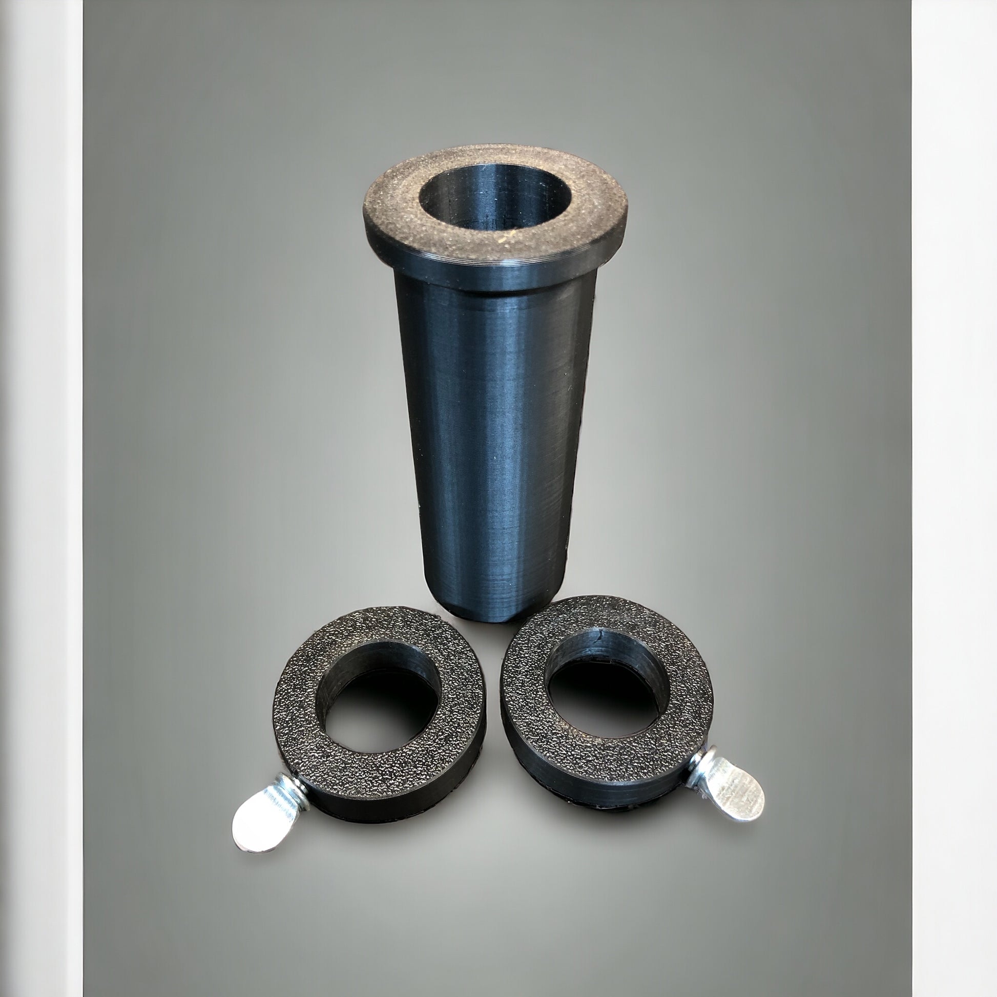 This kit includes a Sleeve that which the Bike Vice clamps to, allowing your pole to rotate while being sandwiched by an upper and lower retainer collar. Sleeve ID is a loose tolerance so you can clamp the tension, making the pole stiffer to rotate.